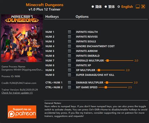 Minecraft Dungeons cheats. Trainers and cheats for Windows Store and PC. 8 options. Player. Unlimited Health. OneHit Kills. With the new Update I found A couple things not workingNeeds to be added. Not Working:I found Infinite Emeralds and unlimited Enchantment points don't work.